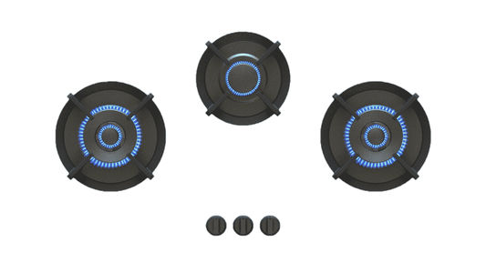 PITT CUSIN CUSIN3BT-NG, 3-Burner, Top Mounted Control Knobs, BLACK Burners, Natural Gas