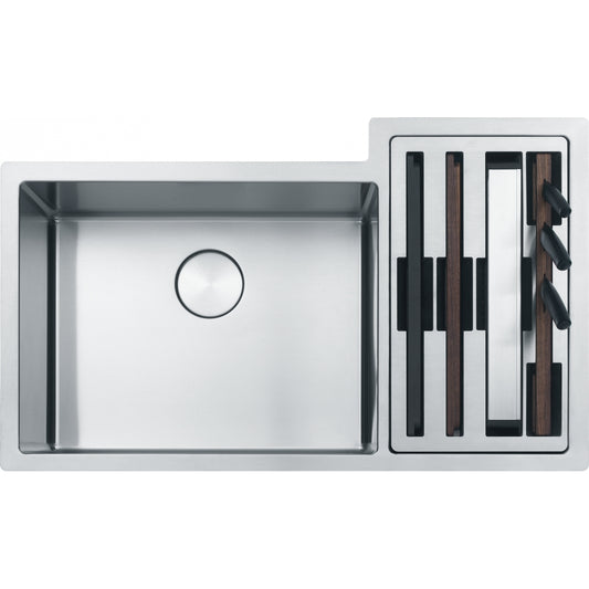 FRANKE CUX16021 CULINARY WORK CENTER UM 19G SS DBL WITH STRAINER BASKET STAINLESS STEEL SINK