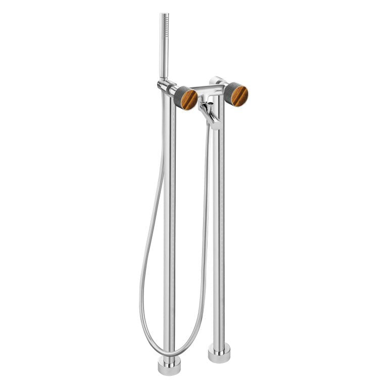 MAIER 82512 Bespoke Floor Mount Tub Filler Curved Handle and Tiger Eye Inlay