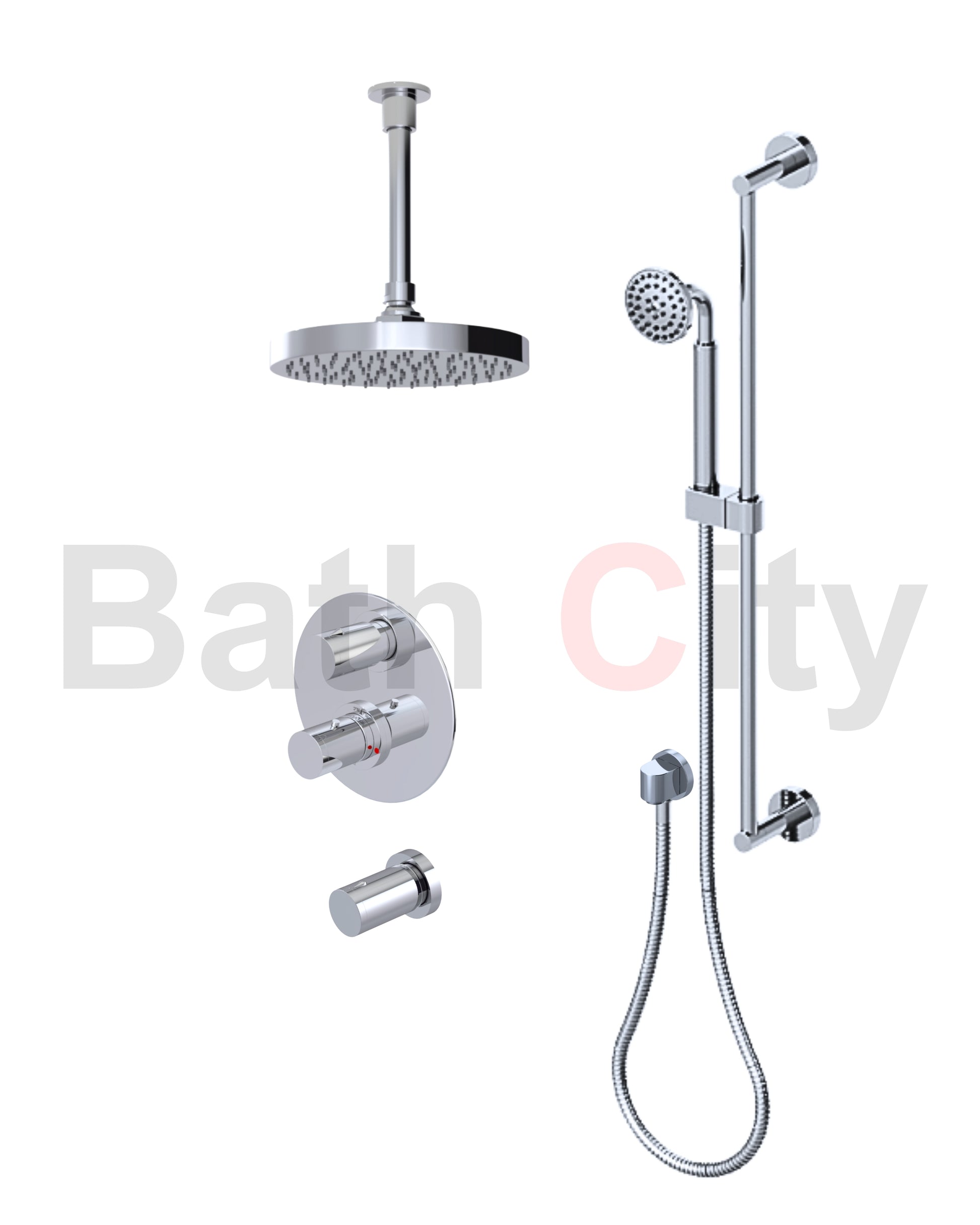 RUBINET 42NVR Nouveau Temperature Control Shower with Two Separate Volume Controls, Fixed Shower Head, Adjustable Slide Bar, Integral Supply & Hand Held Shower 8? Ceiling Mount Trim Only