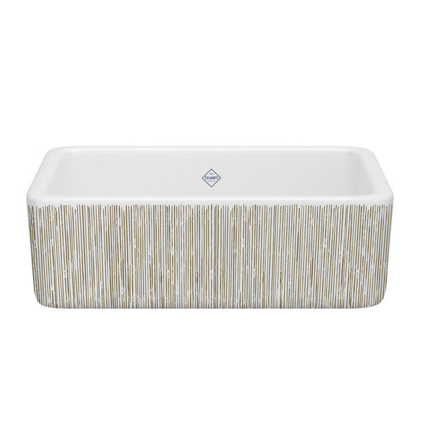 SHAWS RC3018 30 Inch Lancaster White Single Bowl Farmhouse Apron Front Fireclay Kitchen Sink With Lines Design