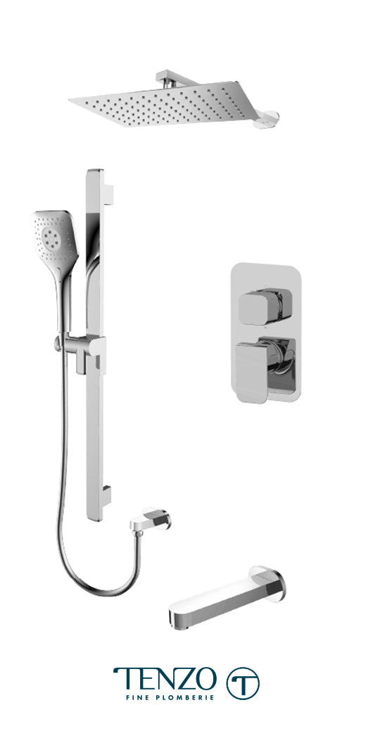 The TENZO QUPB33-501115 Quantum T-Box Kit features a 3-function system with a wall arm and showerhead, hand shower, and spout, perfectly suited for bathtub installations. Its polished chrome finish ensures durability and a contemporary look, while the pressure-balanced design provides consistent water temperature for a safe and comfortable bathing experience. This kit delivers professional-grade performance and versatility for your bathroom.